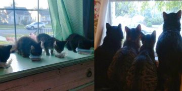 CatsCats wait for their human to come home from work by lining up at the window everyday – from Kitten to Old Age