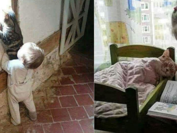 Ever imagined cat and baby becoming close? These photos definitely make your heart melt.